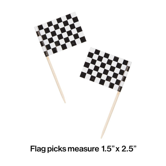All Occasion Decor Picks Flag 2.5 inch Black & White Check 50ct