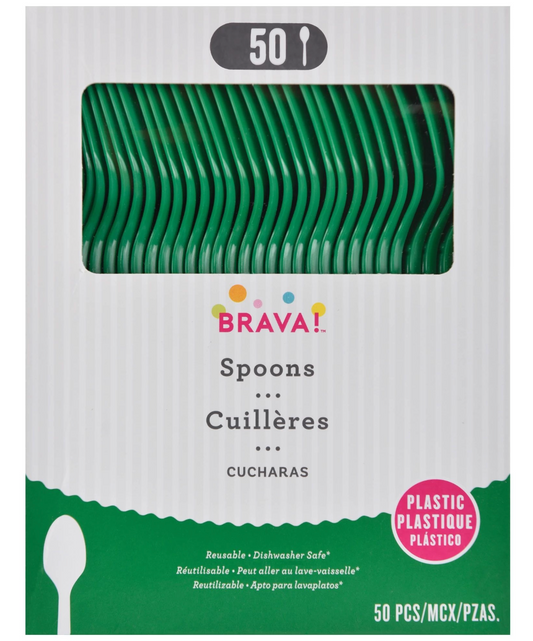 Cuchara de plástico verde festivo, 50 unidades