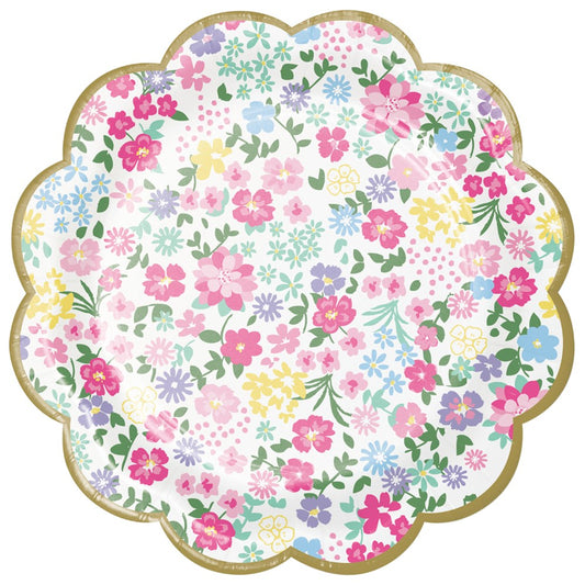 Plato festoneado para fiesta de té con flores, 7 pulgadas, flores variadas, 8 unidades