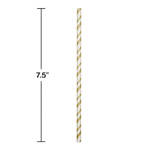 Pajitas de papel rayado blanco dorado 24ct
