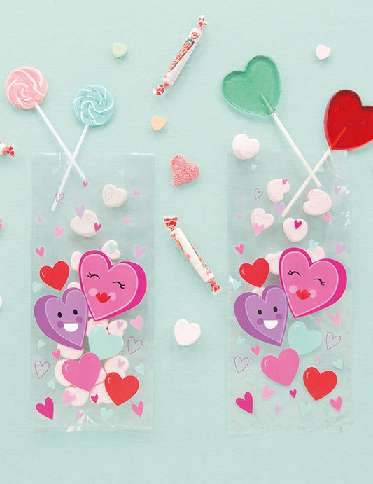 Bolsa de celofán con forma de corazón sonriente para el día de San Valentín, 5 x 11 pulgadas, 20 unidades