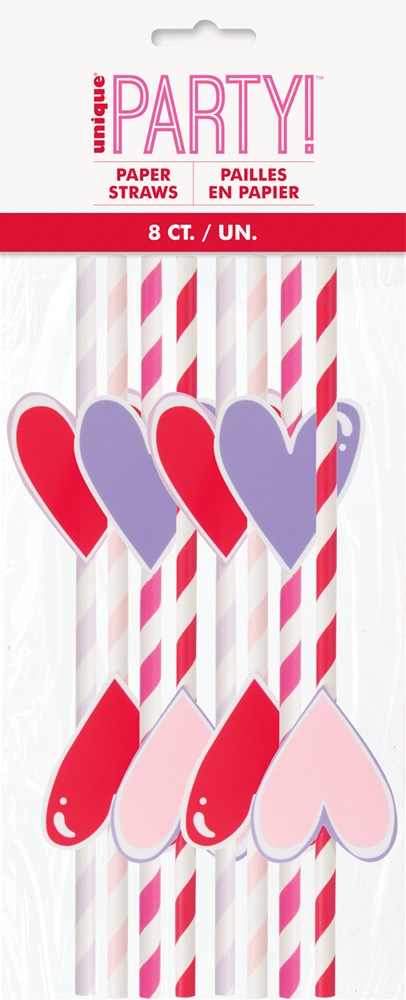 Pajita de papel con forma de corazón para el día de San Valentín, 10 unidades