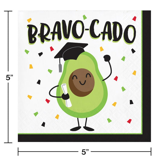 Servilletas para bebidas con texto en inglés "Graduation Fun Bravocado", 16 unidades