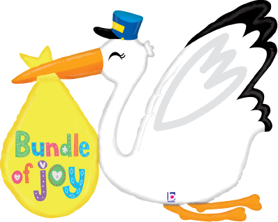 Betallic Baby Bundle Stork 38 inch Shaped Foil Balloon Packaged 1ct