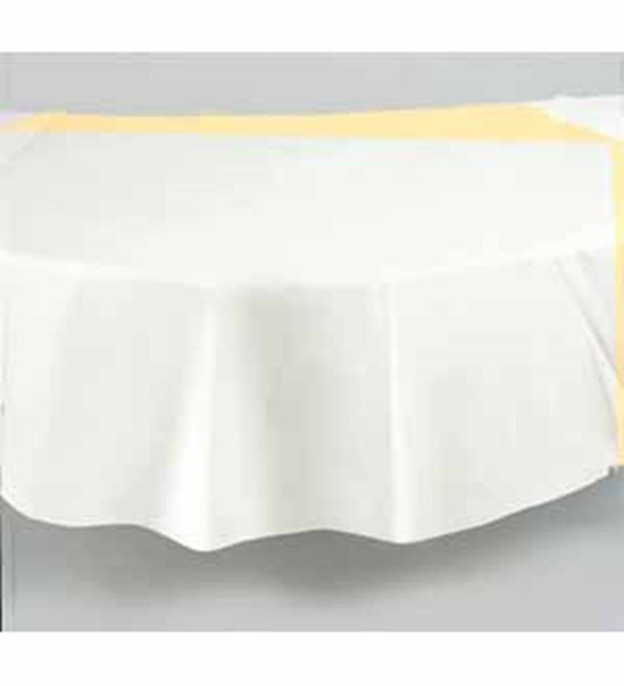 White Solid Round 84 inch Plastic Table Cover