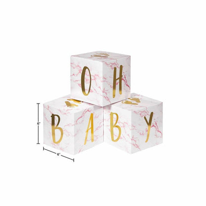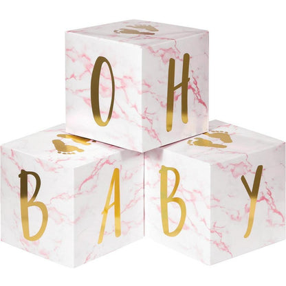 Pink Marble Centerpiece Baby Blocks Foil 3ct